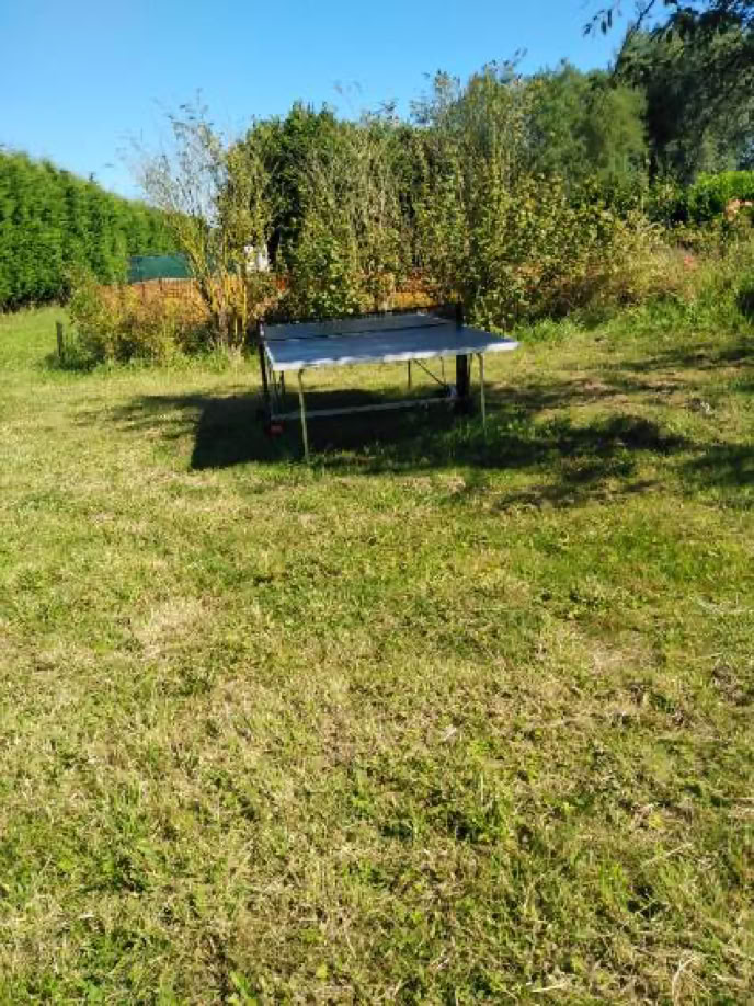 Een jeu de boulesbaan, een tafeltennistafel, een buitensportterrein en een weide zijn toegankelijk.